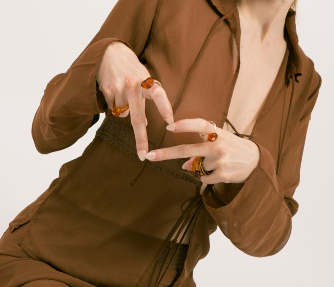 Zirconite Amber Glass Ring