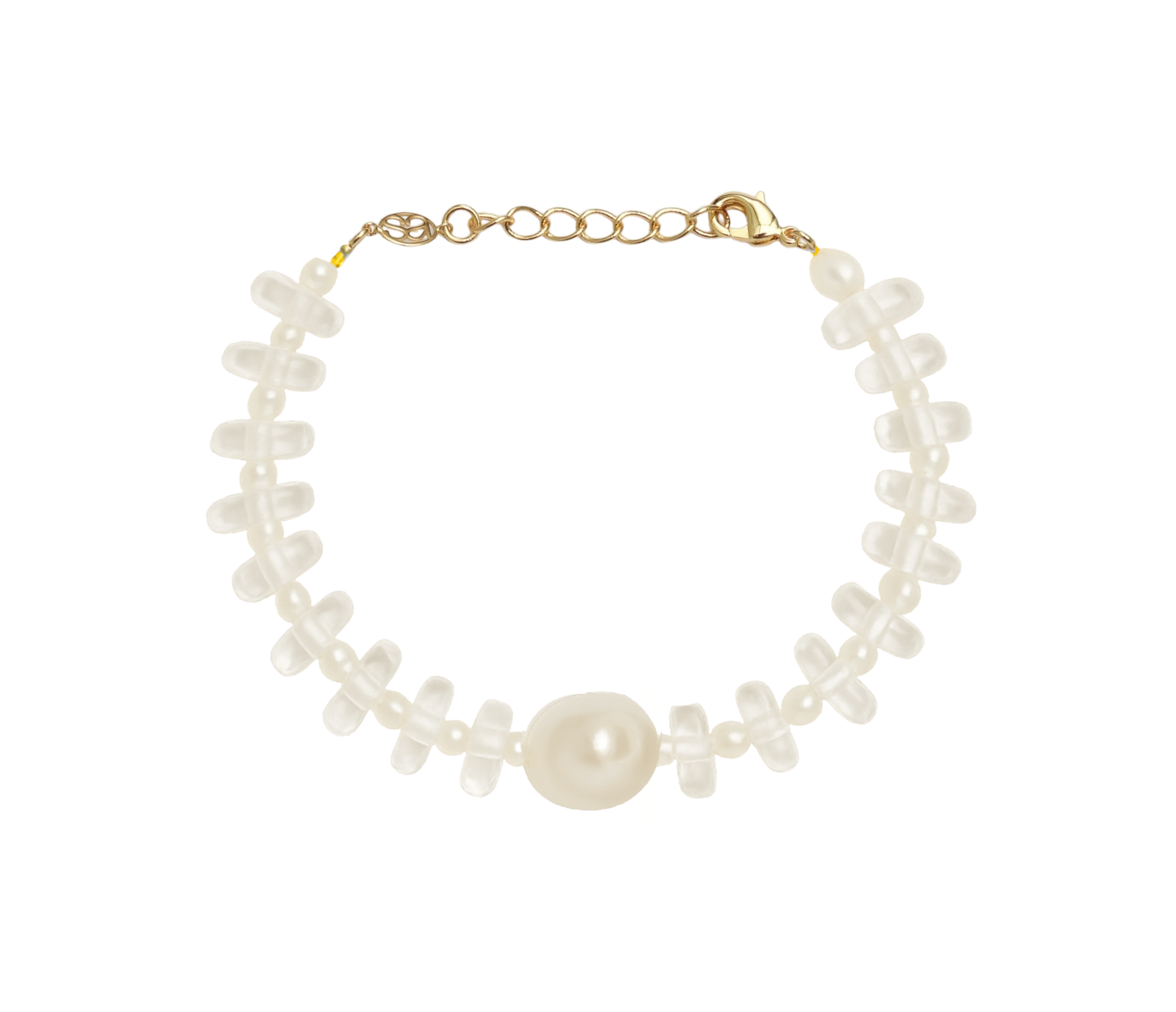 Clear and Freshwater Pearl Rondelle Wave Bracelet with Baroque Pearl