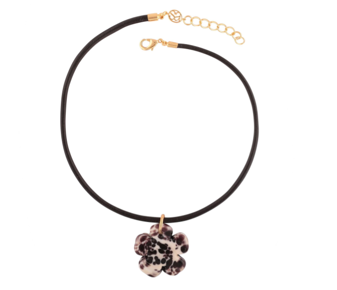 Cord: Genuine black leather 3mm cord. Total length 37.50 cm, adjustable at 34cm. Back fastening with lobster clasp.