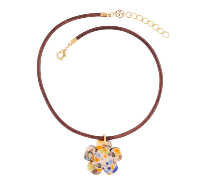 Cord: Genuine vintage brown leather 3mm cord. Total length 37.50 cm, adjustable at 34cm. Back fastening with lobster clasp.