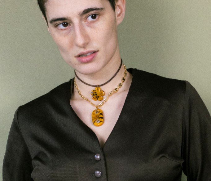 Cord: Genuine vintage brown leather 3mm cord. Total length 37.50 cm, adjustable at 34cm. Back fastening with lobster clasp.