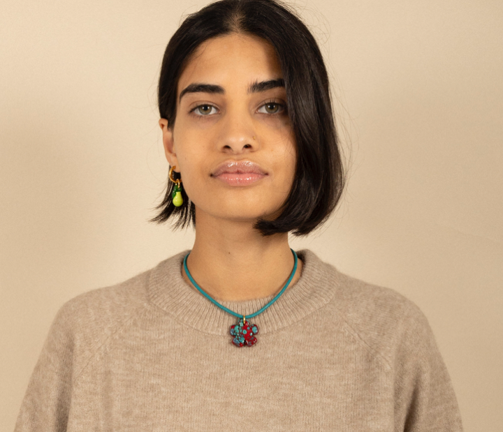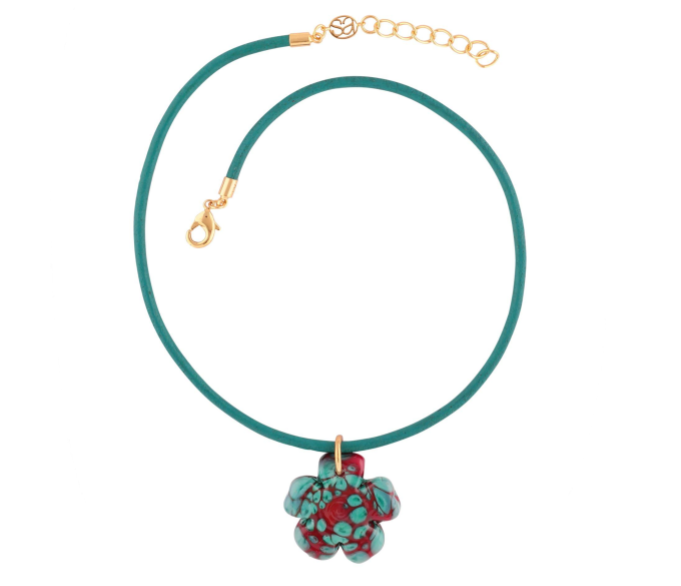 Cord: Genuine turquoise leather 3mm cord. Total length 37.50 cm, adjustable at 34cm. Back fastening with lobster clasp.