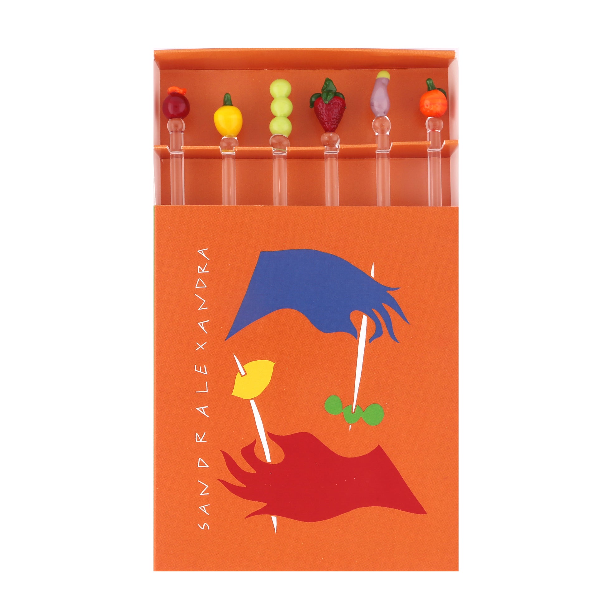 Brighten up your dinners and drinks with Sandralexandra’s set of six cocktail & nibble sticks.