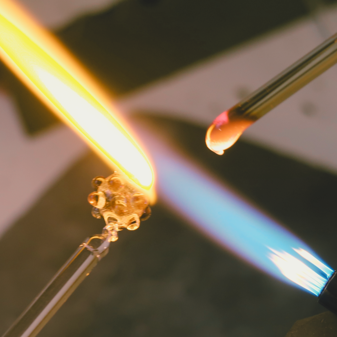 Each of the six cocktail sticks is a unique miniature sculpture featuring swirling patterns, spirals, and textured finishes that mirror the surreal shapes and mosaics of Gaudí’s designs. Made from Murano glass in clear and warm amber hues, they evoke the sunlight and earthy tones that inspired Gaudí’s work. Sandra's sticks transform every drink into a miniature work of art.