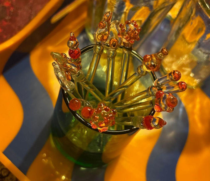 Where function meets artistry. Our new hand crafted Murano Glass cocktail sticks are inspired by the iconic chimneys of Catalan architect Antoni Gaudí. Each cocktail stick is as much a conversation starter as it is a practical accessory.