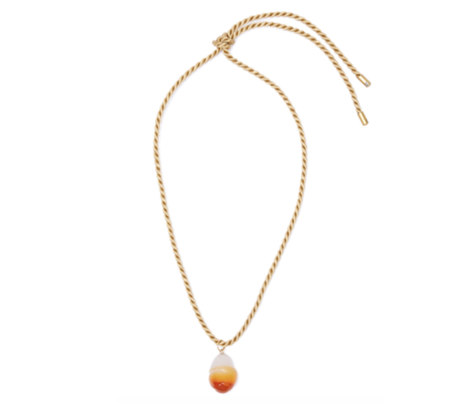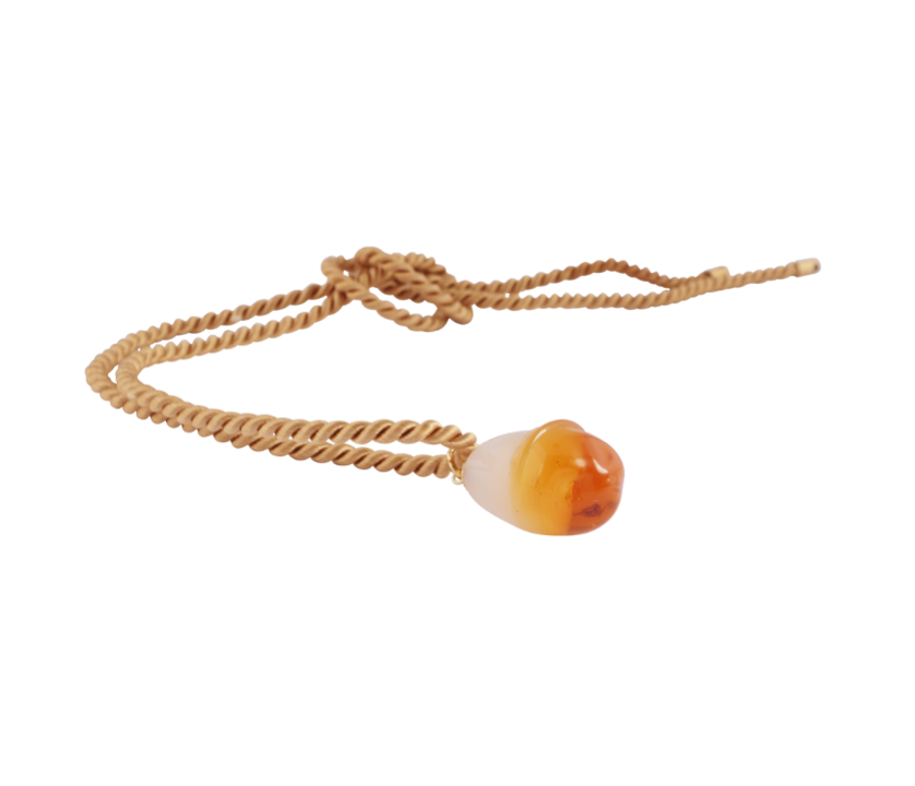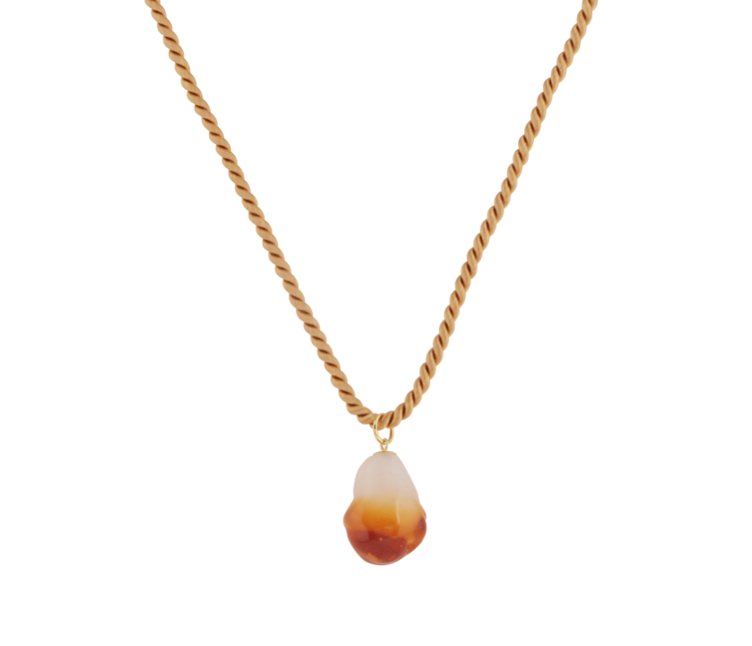 Cord: 3mm silk twisted cord with gold plated end caps. Total length: 80 cm cord, adjustable with tie fastening. You can wear it long, short or even as choker.