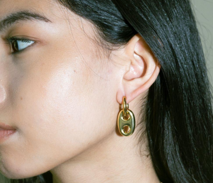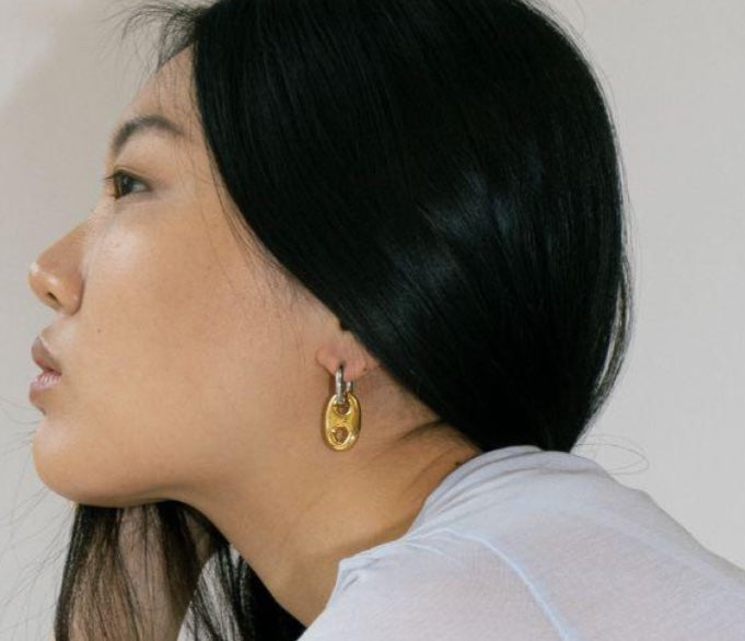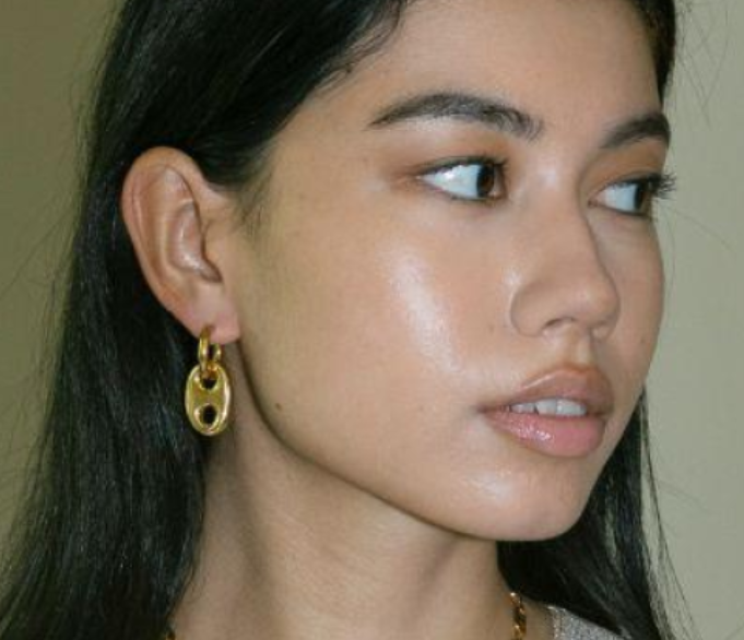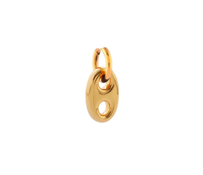 Hoops: 18K gold plated nickel free hoops. 3mm thick and 18mm outer diameter.