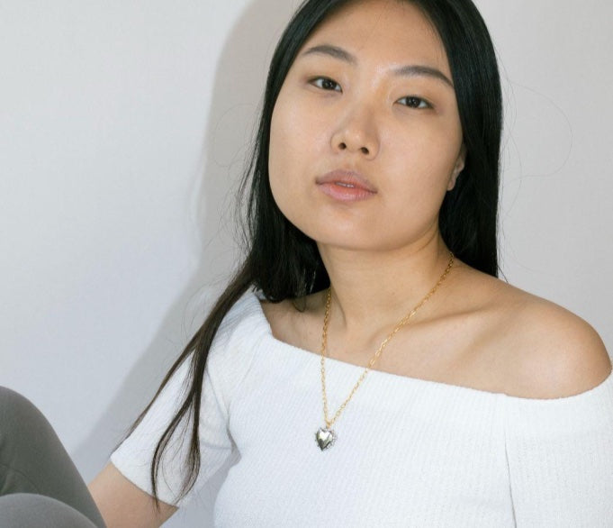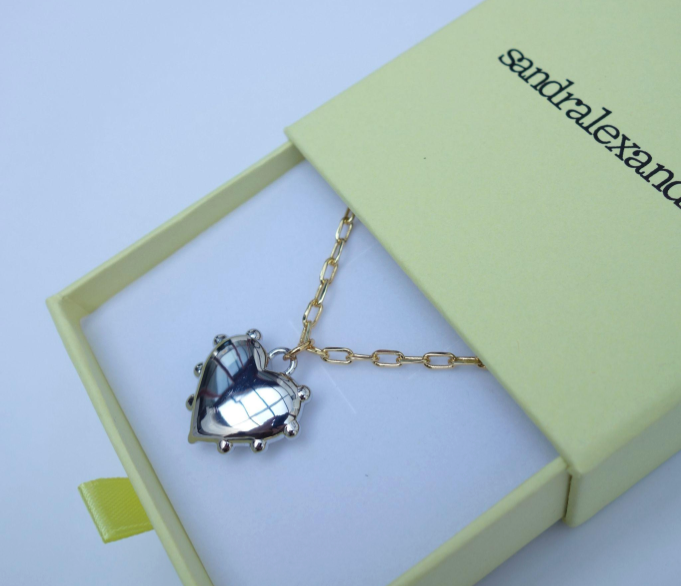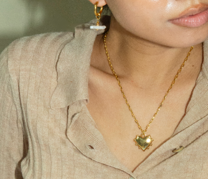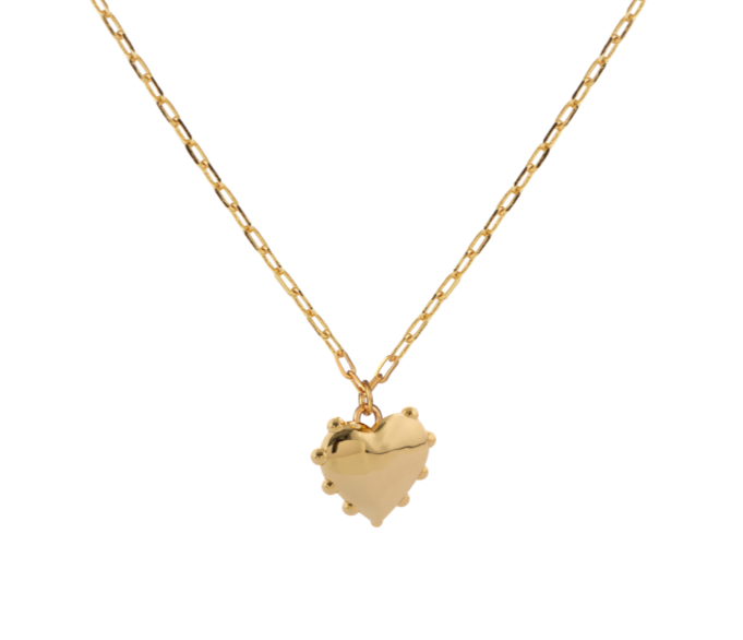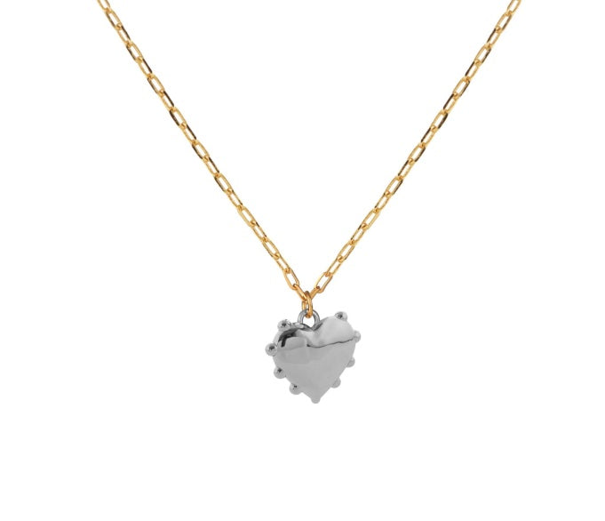 18-Karat Gold Plated Heart Charm or Stainless steel with imitation rhodium plating and 18k Gold Plated Brass Link chain necklace.