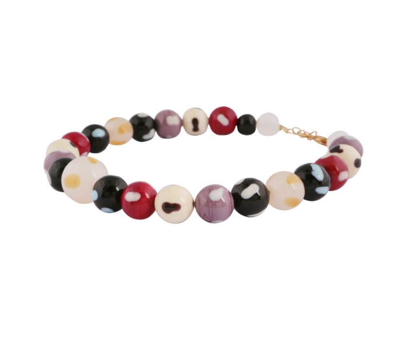 Composition: Lampwork glass beads and 18K gold plated lobster clasp.