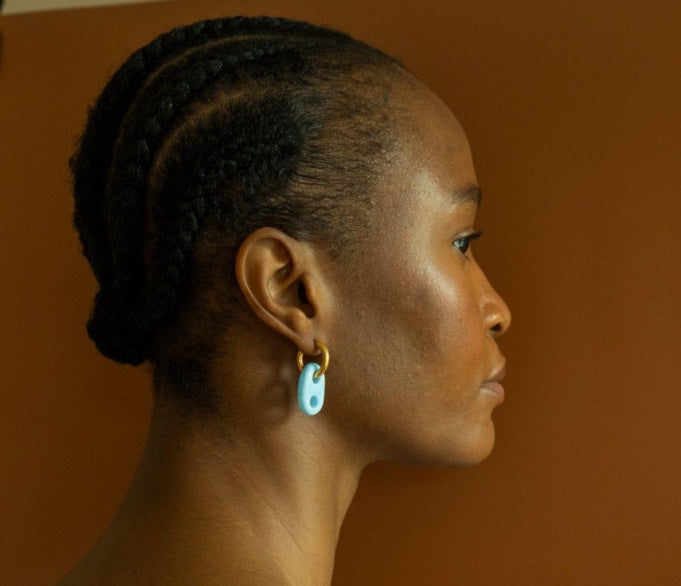 Hoops: 18K gold plated nickel free hoops. 3mm thick and 18mm outer diameter.