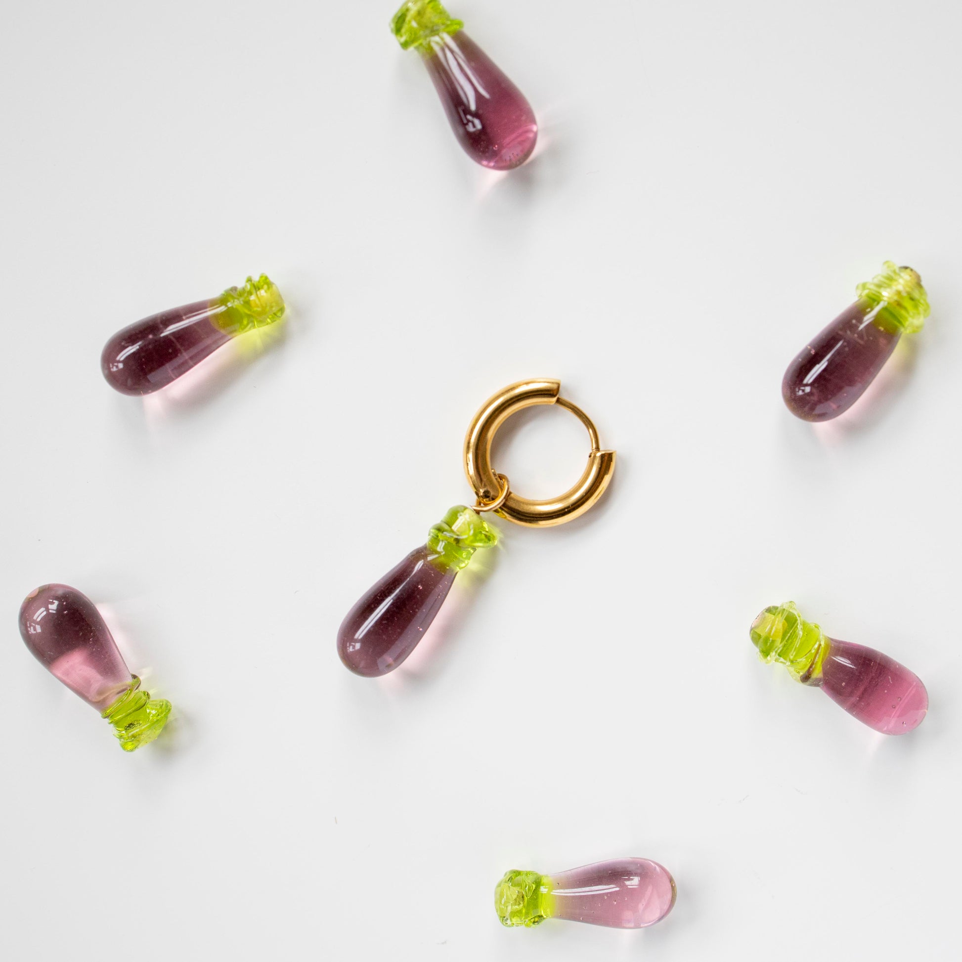 Handcrafted with lampwork glass by Spanish artisans local to Barcelona. 18K gold plated nickel free hoops.