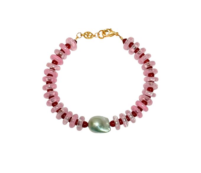 Pink and Red Rondelle Wave Bracelet with Baroque Pearl