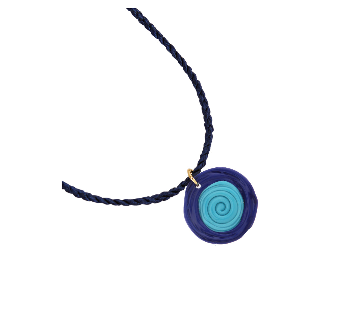Navy & pastel blue spiral handcrafted with lampwork glass by local artisans between Barcelona and the UK.
