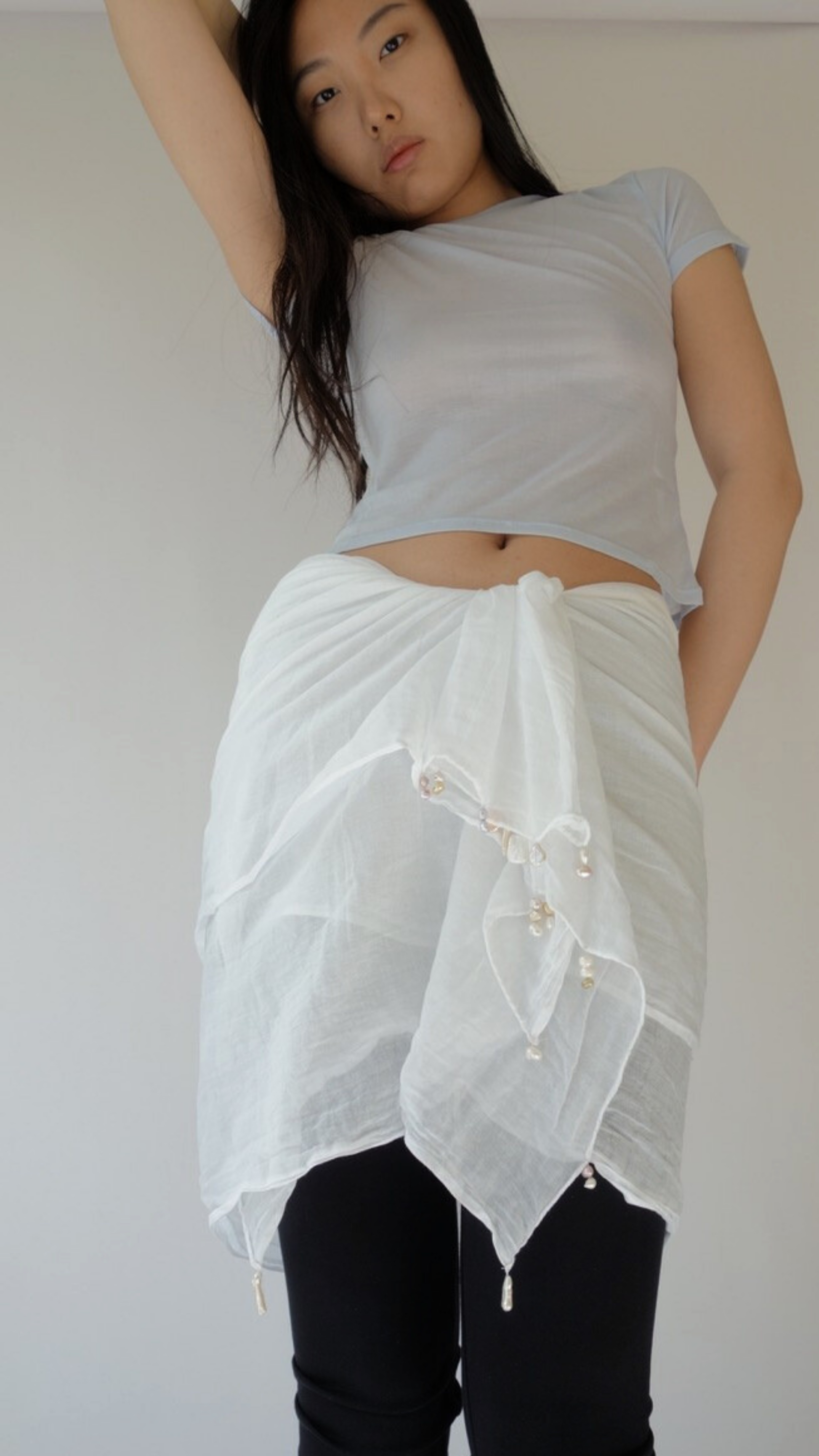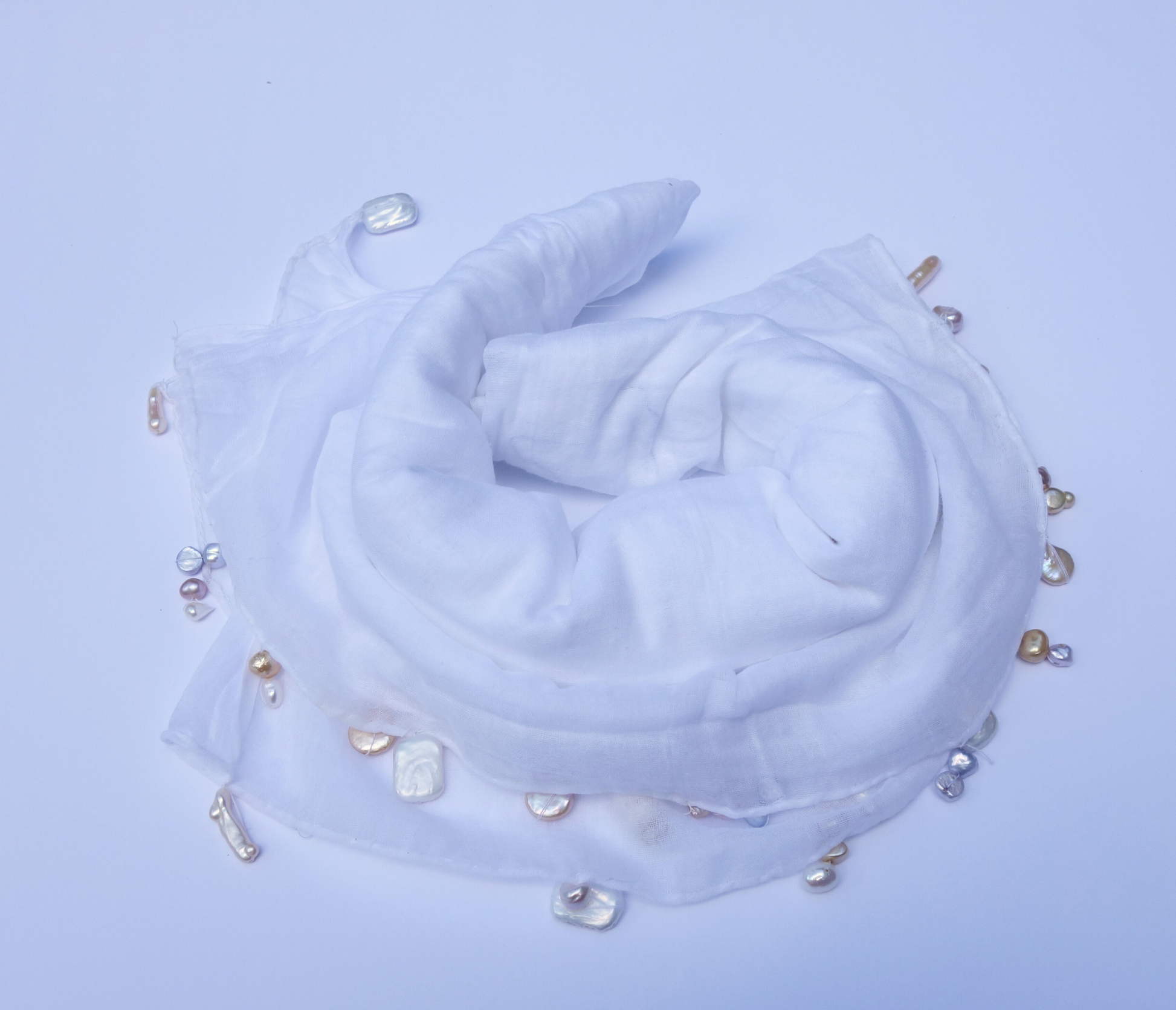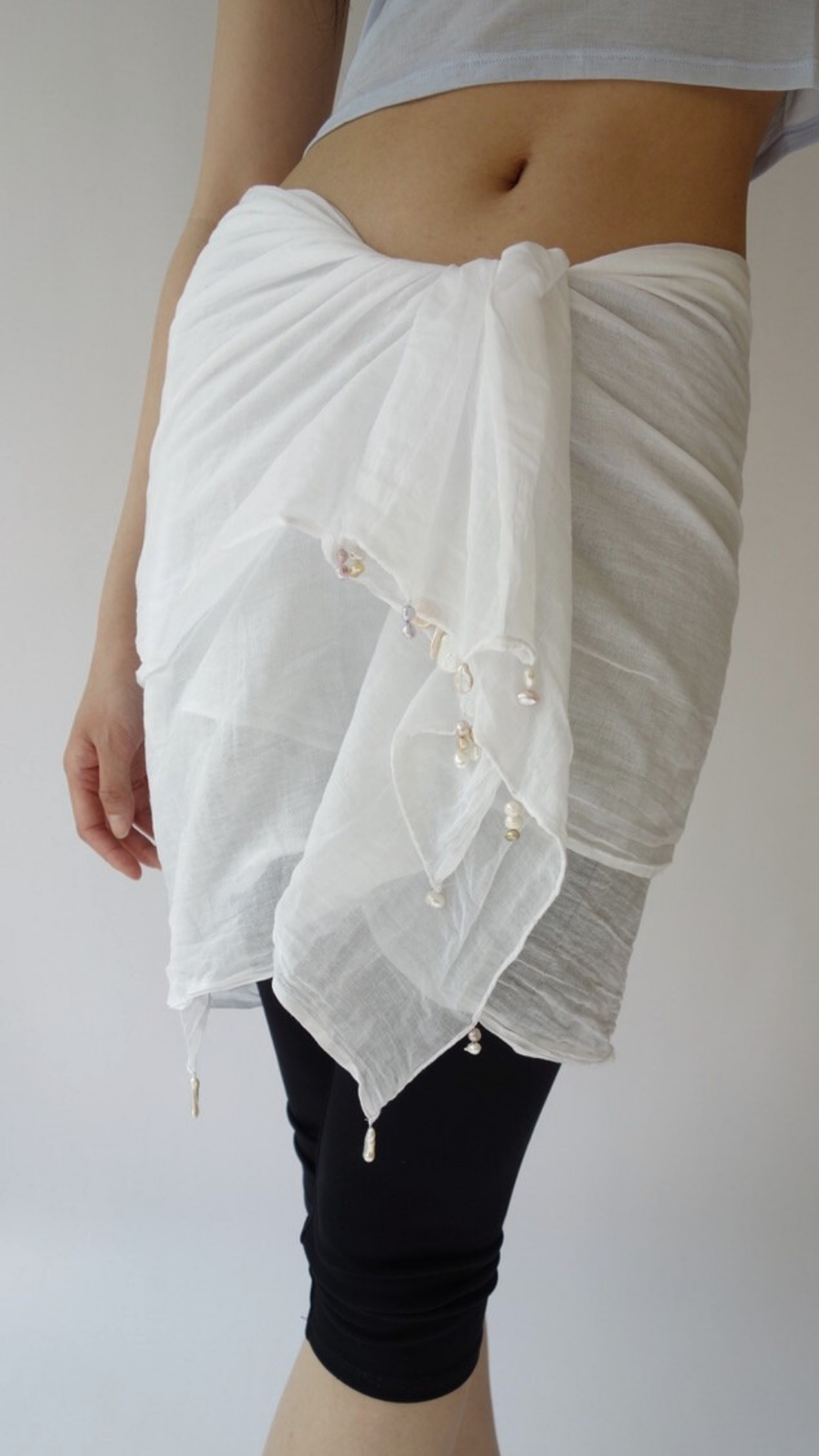 White Sarong with Freshwater Pearls